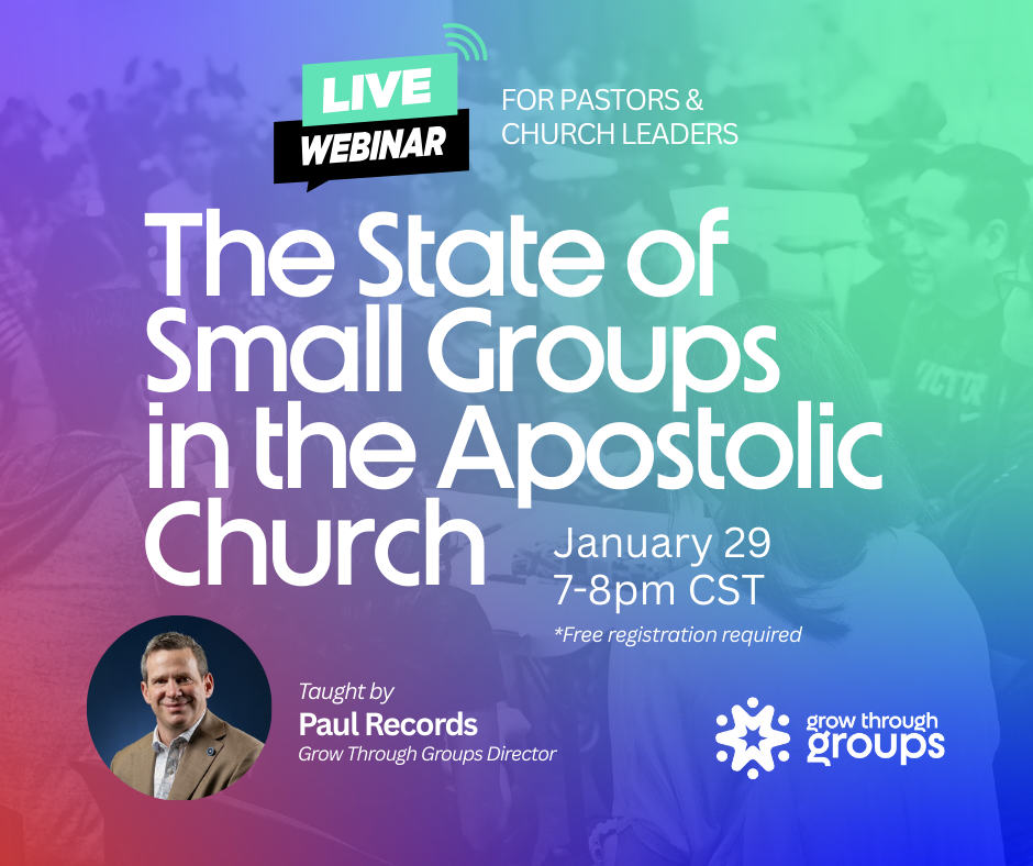 In this live, one-hour webinar, Paul Records, Director of Grow Through Groups, will present key insights drawn from survey data collected from Apostolic churches across North America regarding the current state of small group ministry.